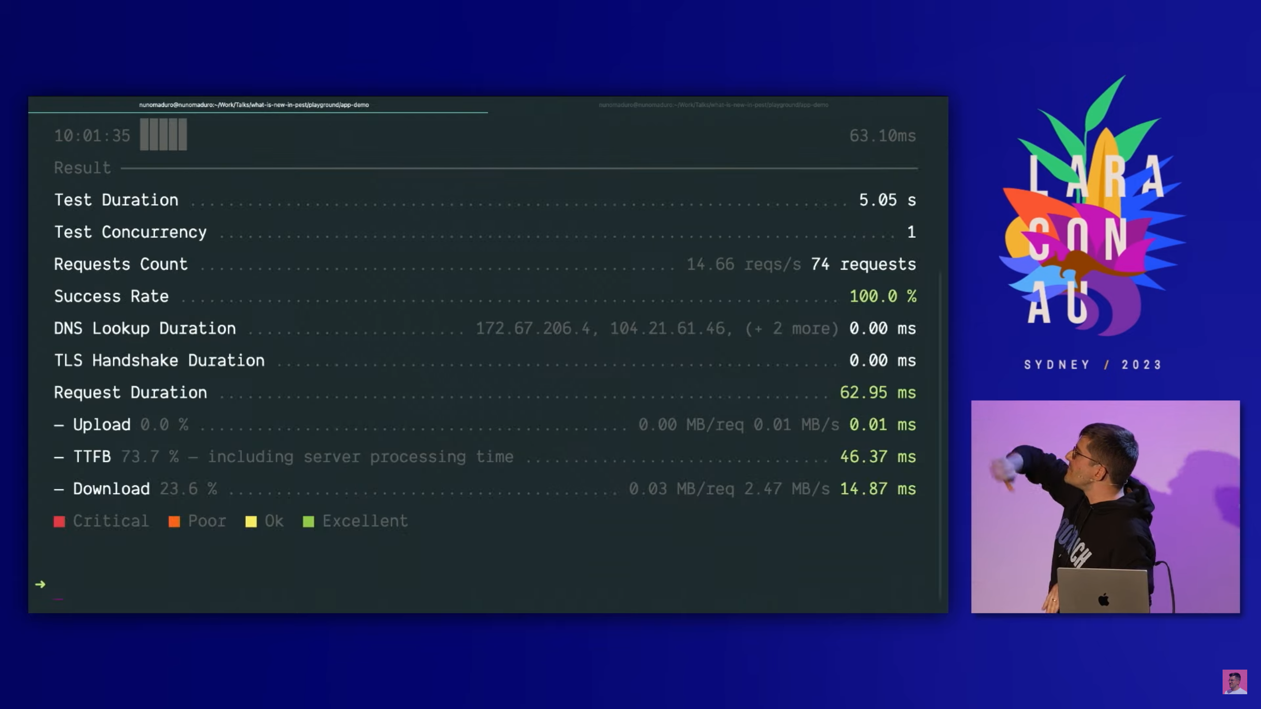 จากตัวอย่างที่นาย Nuno ได้โชวน์ใน Clip ได้มีการลอง Stress Test Laravel App ที่ run บน Laravel Octane อีกด้วย โดยความเร็วที่ได้นัน้น น่าสนใจมากจริง ๆ ครับ